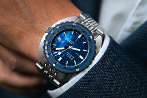 Dieses neue Linkshändermodell wird mit dem charakteristischen Stahlarmband aus Reissperlen geliefert, das über eine Ratschen-Tauchverlängerung in der Schließe verfügt. Da es sich um eine limitierte Auflage (von 300 Stück) handelt, legt Doxa ein zusätzliches zweiteiliges Nylonarmband bei. Die Sub 300T Aristera wird ab Oktober an offiziellen Verkaufsstellen erhältlich sein, und Vorbestellungen sind ab sofort auf der Doxa-Website möglich. Der Preis für diese limitierte Auflage beträgt 2.490 €.