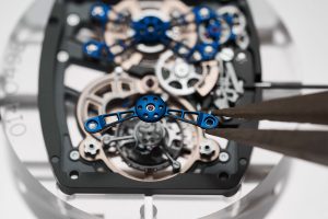 Aus technischer Sicht ist das Neue an der RM 16-02 die Architektur und Ausführung eines bestehenden Gehäuseprofils und Uhrwerks. Richard Mille bezeichnet das Uhrwerk im Inneren der RM 16-02 als „neu“, was daran liegt, dass es so viele neue Teile hat. Die meisten Leute gehen davon aus, dass ein neuer Motor anders funktioniert, und meines Wissens hat das beeindruckende Kaliber CRMA9 von Richard Mille eine ähnliche Leistungsarchitektur wie andere Uhrwerke, konzentriert sich aber eher auf die Verwendung neuer Brücken- und Teilestile, um ein frisches Gefühl zu erzeugen. Das Unternehmen hat sich wirklich auf das eckige Thema der Uhr konzentriert, da dieses Konzept die Form des Zifferblatts, des Uhrwerks und sogar des automatischen Rotors definiert. Das bedruckte Zifferblatt aus Saphirglas und die farbigen Titanbrücken sind alle maßgeschneidert für die RM 16-02 und dienen ausschließlich einer interessanten Ästhetik und dem Versuch, dem Markt etwas Frisches und Neues anzubieten. Unternehmen wie Richard Mille haben als Uhrmacher der Spitzenklasse eine echte Verpflichtung, immer wieder neue Looks zu erfinden und mit ihnen zu experimentieren.